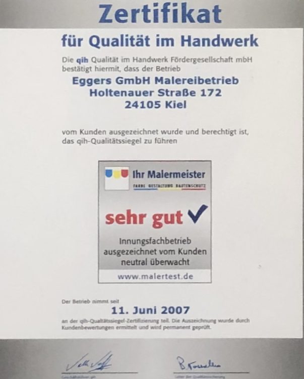 Seit fast 90 Jahren bietet der renomierte Kieler Malereibetrieb Eggers GmbH in jetzt dritter Generation seine Handwerksleistungen im regionalen Raum an. Auf unserer Webseite wollen wir Ihnen unseren Betrieb etwas näher bringen. Sowohl die Geschichte der Entstehung in den 1930er Jahren und die Entwicklung bis heute hin, als auch unser Leistungsspektrum, der Einsatzbereich und einige unserer Referenzen werden Ihnen unsere Kompetenz in allen Bereichen des Malereihandwerks zeigen.